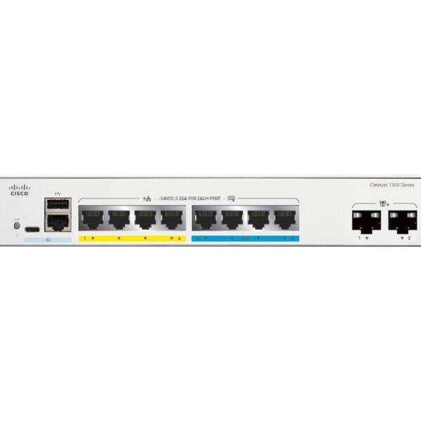 Cisco Catalyst C1300-8FP-2G 8-Port Gigabit PoE+ Managed Switch – Powerful 120W Full PoE Budget with 2x 1G Combo Uplinks