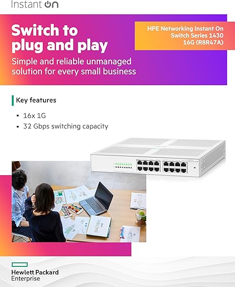 HPE Aruba ION 1430 16-Port Gigabit Switch | 32Gbps Switching Capacity | 23.80 Mpps Throughput | 16x 1G RJ-45 Ports | Plug-and-Play Networking | Compact & Durable Design