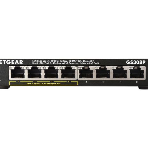 Netgear GS308P 8 Port Gigabit Ethernet Unmanaged Switch with 4-Port PoE