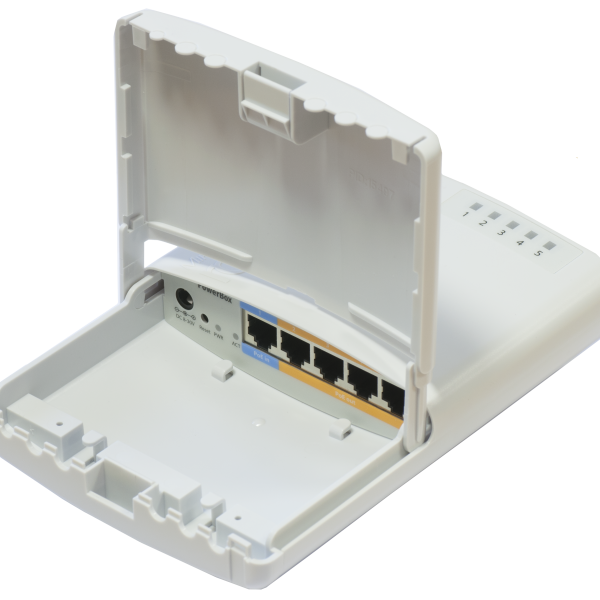 Mikrotik PowerBox 650MHz CPU, 64MB RAM, 5xEthernet with PoE output for four ports, RouterOS L4, outdoor case, PSU