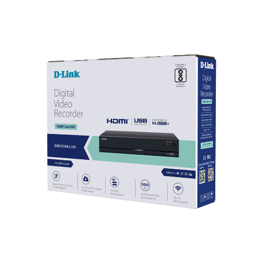 D-Link DVR-F2104-L1H5 | 4-Channel H.265+ 2MP Lite DVR | Supports AHD/TVI/CVI/IP Cameras up to 2MP | 1 SATA Slot | 2 Extra IP Channels | Cloud Storage