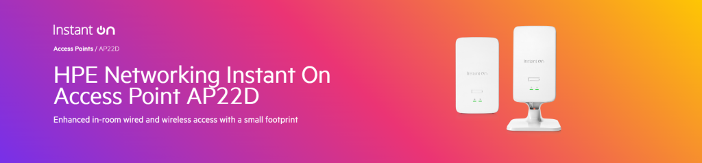 This device is part of the Aruba Instant On portfolio, offering simple and efficient management via the Instant On mobile app or web portal. Aruba AP22D has a unique design supports flexible installation, allowing it to function as a standalone desk unit or be mounted on a wall for optimal placement.