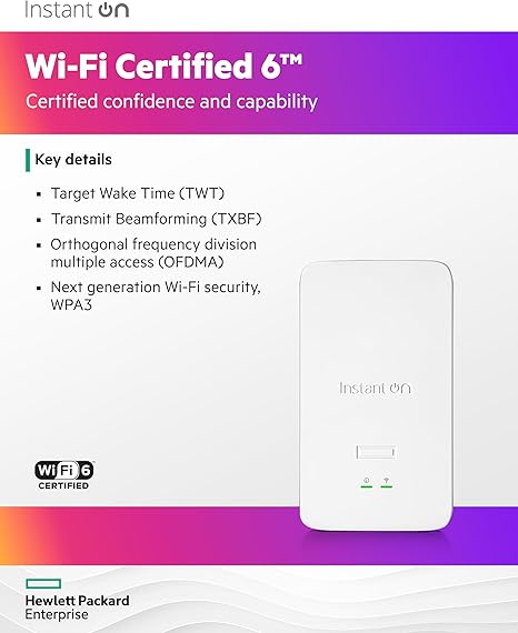 • Wi-Fi CERTIFIED 6™ Instant On AP22D
