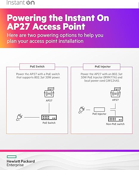 Aruba AP27 comes With the Aruba Instant On cloud management platform, setting up and managing your network is seamless. The Aruba AP27 is controlled via the Instant On mobile app or web portal, offering intuitive configuration, remote monitoring, and easy scalability to adapt to your growing business needs.