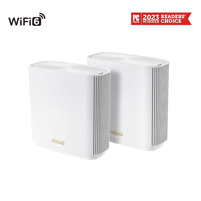 ASUS AX XT8 White 2 Pack (XT8-WHITE-2PK) is designed with unique internal antenna placement, the XT8 ensures strong and reliable WiFi coverage for up to 5,500 sq. ft. or 6+ rooms, eliminating dead zones and weak spots. With WiFi 6 technology (OFDMA + MU-MIMO), multiple devices can transmit data simultaneously without slowdowns, making it ideal for busy households and smart homes.
