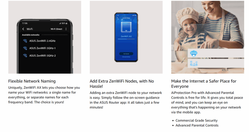 Parental Controls & Guest Network – Safe browsing, app blocking, and up to 9 guest SSIDs.
