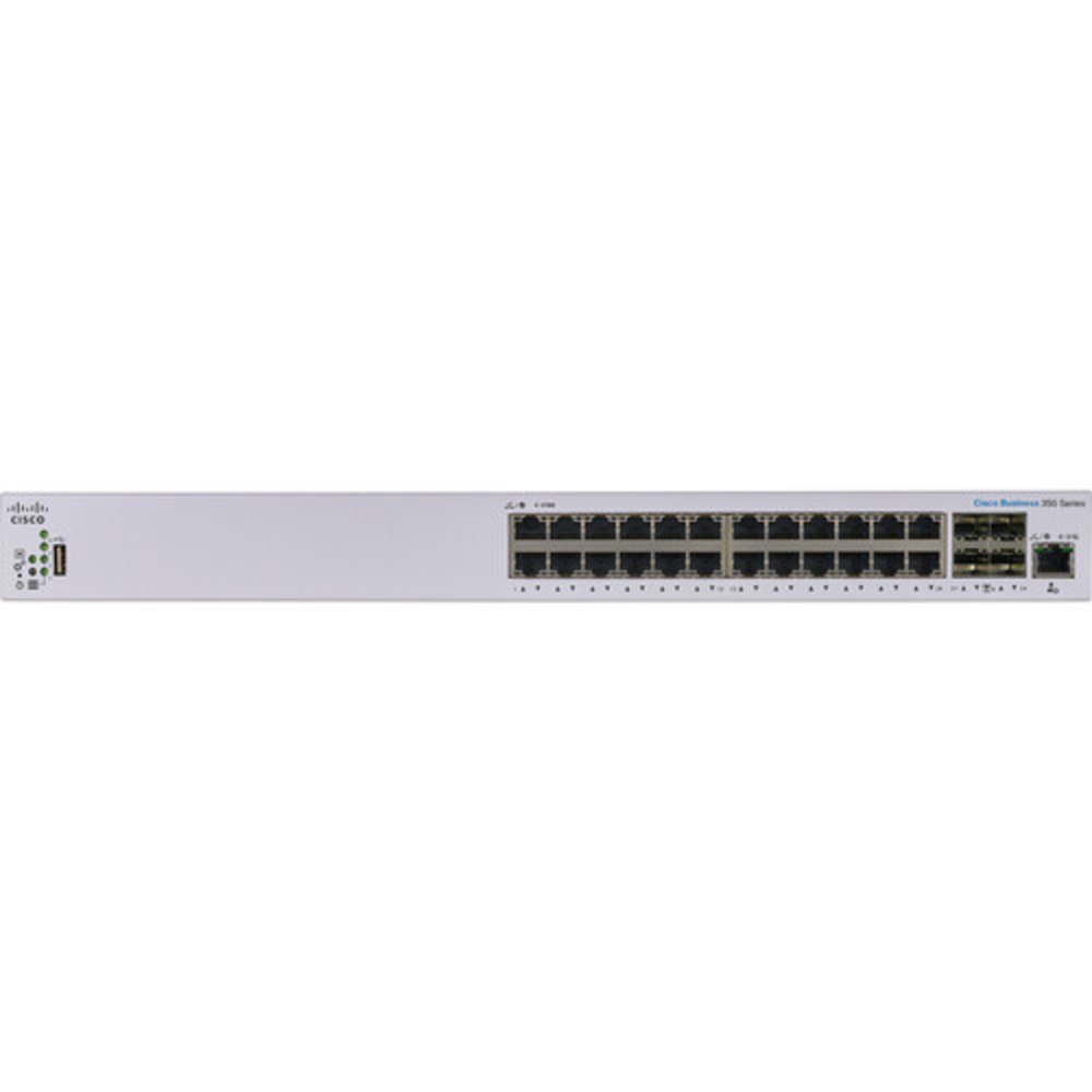 The Cisco Business CBS350-24XT is a high-performance, fully managed 24-port 10-Gigabit Ethernet switch designed for small to medium business networks. The Cisco Business CBS350-24XT enables fast data transfer and robust network management with a comprehensive range of Layer 2 and Layer 3 features. The Cisco Business CBS350-24XT switch supports 20 dedicated 10G copper Ethernet ports plus 4 combo 10G copper/SFP+ ports for uplink flexibility, delivering a switching capacity of 480 Gbps and a packet-forwarding rate of 240 million packets per second (mpps).