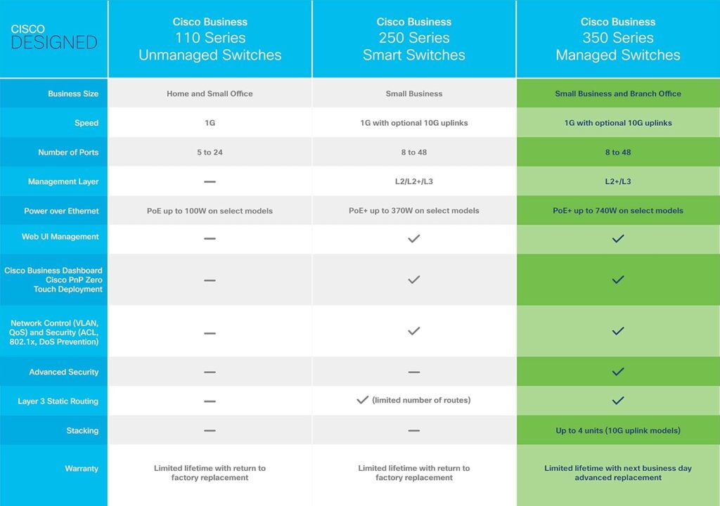 Power over Ethernet (PoE) Support: Though this model focuses on high-speed connectivity, it is part of the Cisco Business 350 portfolio where select switches support high-performance 802.3af and 802.3at PoE+ for powering IP endpoints such as phones and access points.