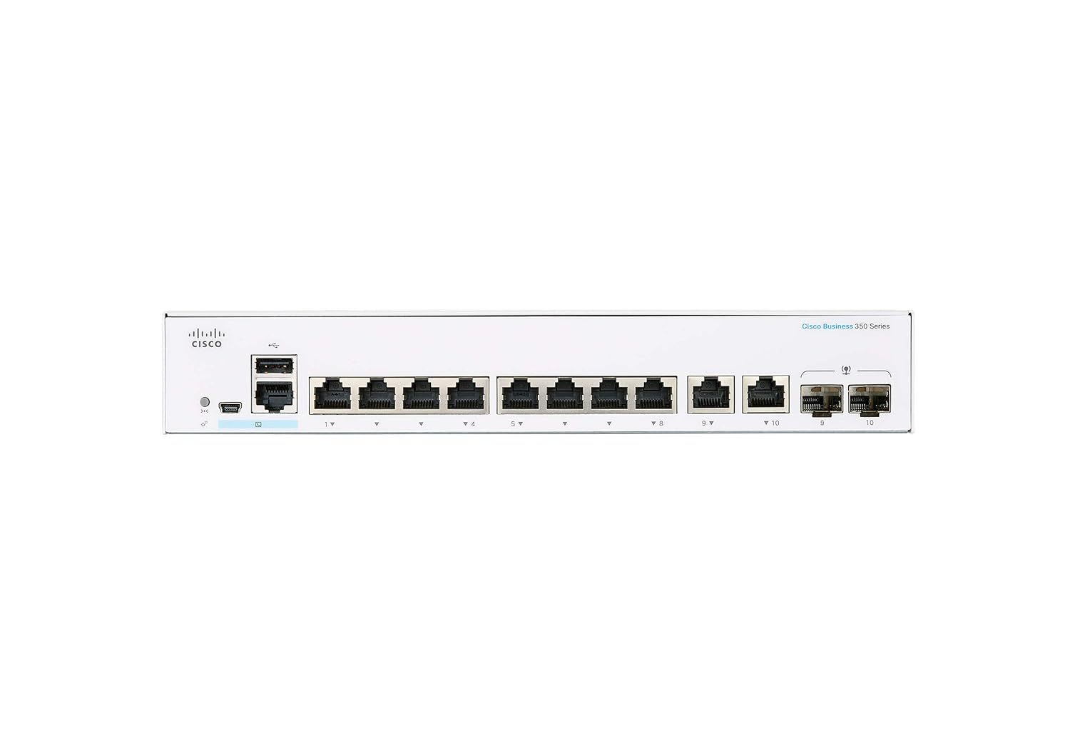 The Cisco Business CBS350-8T-E-2G is a high-performance managed switch designed for small and mid-sized businesses, providing robust advanced networking control and security. The Cisco Business CBS350-8T-E-2G features 8 Gigabit Ethernet ports and 2 combo SFP/RJ45 uplink ports, making it ideal for expanding network capacity and supporting high-speed connected devices such as computers and network-attached storage. The Cisco Business CBS350-8T-E-2G switch’s fanless, rackmount design ensures silent operation and efficient power use, while intuitive management via Cisco’s Business Dashboard or mobile app allows quick setup and monitoring.