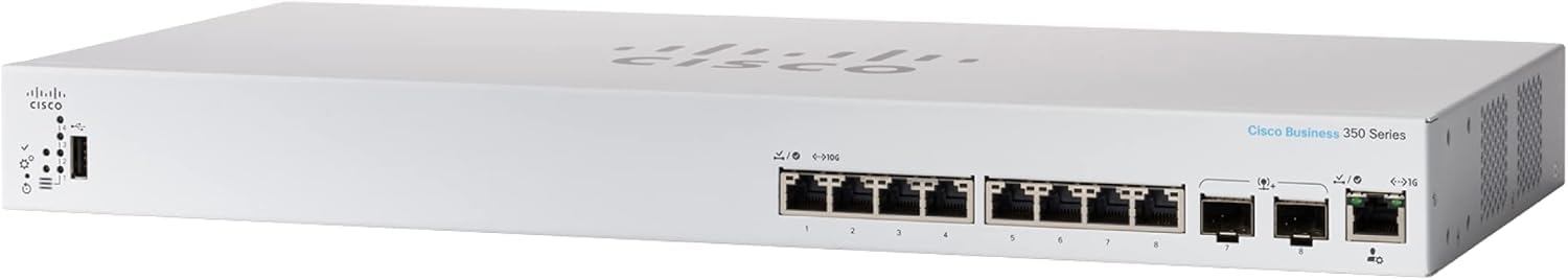 The CBS350-8XT Managed 8-Port 10G Ethernet Switch from Cisco Business offers an ideal solution for high-speed connectivity and advanced traffic control in professional network setups. The Cisco Business CBS350-8XT compact, rack-mountable form factor ensures easy integration while delivering the scalability required for growing businesses.