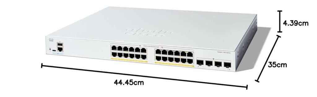 Built with enterprise-grade reliability and efficiency, The Cisco Catalyst C1300-24FP-4G runs on a customised Linux OS with an intuitive management dashboard, simplifying network setup and advanced feature control. It supports Layer 2 and Layer 3 switching capabilities, providing advanced traffic management and security features essential for modern digital environments. The Cisco Catalyst C1300-24FP-4G switch’s energy-efficient design includes power-saving technologies that reduce operating costs, while its compact 1U rack-mountable form factor fits seamlessly in wiring closets and server rooms.