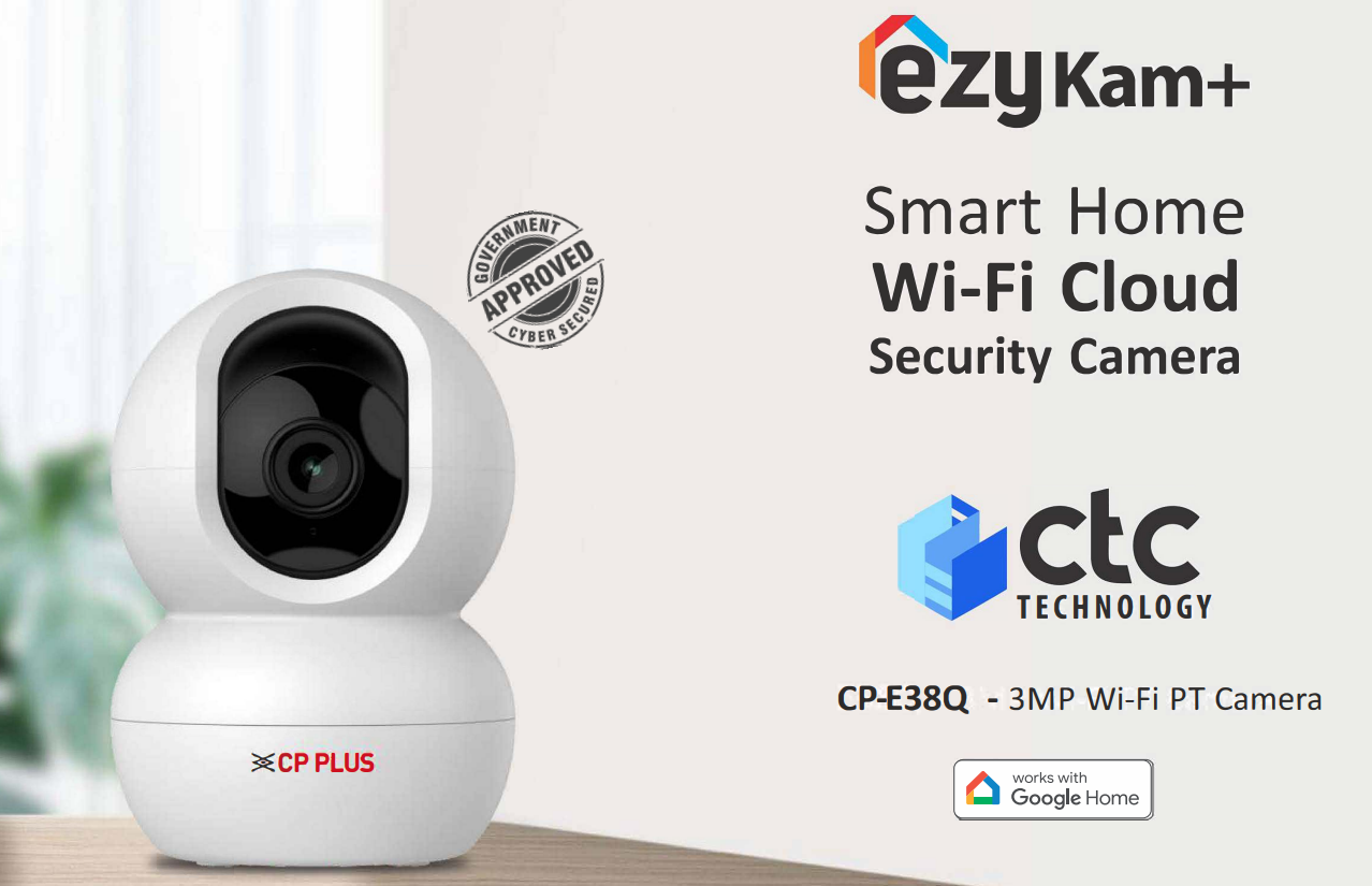 The CP PLUS CP-E38Q is a 3MP indoor Wi-Fi pan-tilt camera designed for home surveillance, supporting motion tracking, human body detection, two-way audio, IR night vision, and local microSD storage.