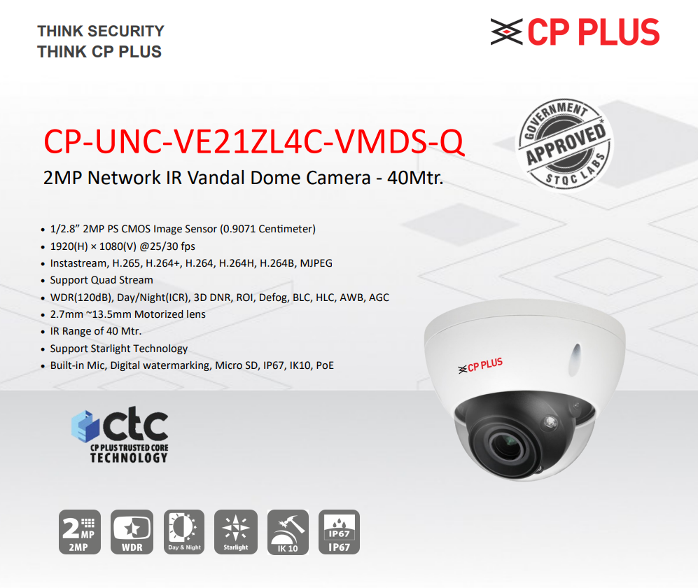 This professional-grade CP PLUS camera CP-UNC-DA41L3C-D-Q stands out as a robust surveillance device engineered for reliability, clarity, and smart security features.