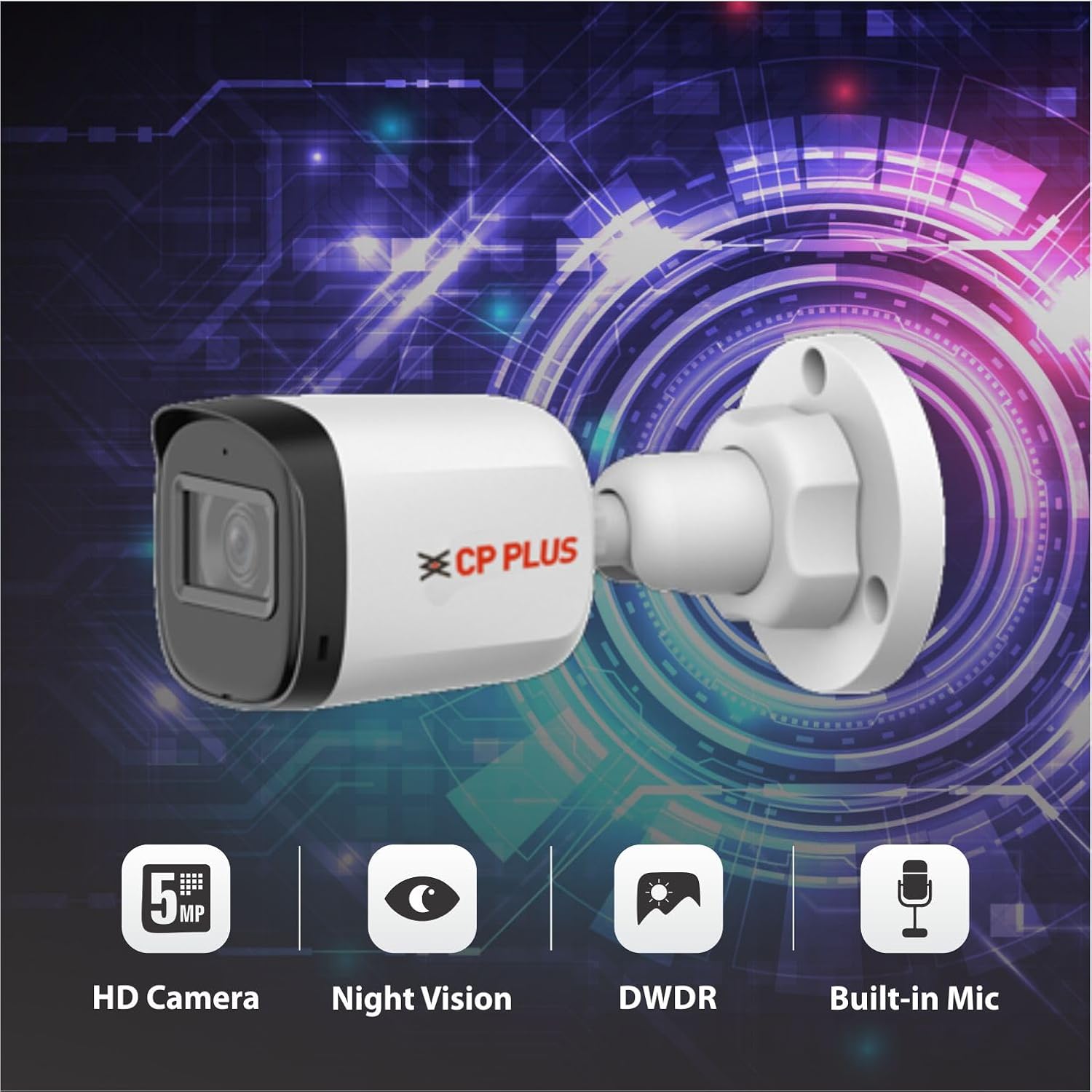 CP PLUS CP-URC-TC51PL3C delivers crystal-clear 5MP video with smart dual IR night vision, built-in mic, and rugged IP67 weatherproof design, ensuring reliable security surveillance day and night.
