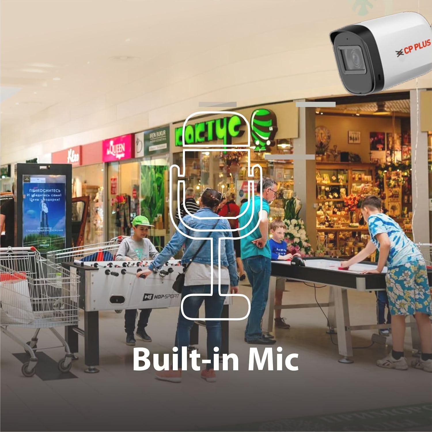 Enhanced with a built-in microphone, the CP-URC-TC51PL3C captures high-quality audio to complement video footage, delivering comprehensive security coverage. Its long-distance transmission capability allows for clear video signals over extended cables without degradation. Strict compliance with RoHS, FCC, and ONVIF standards underscores the reliability and quality assurance synonymous with the CP PLUS brand.