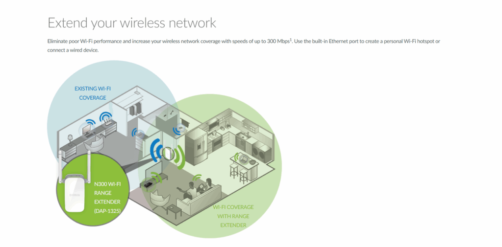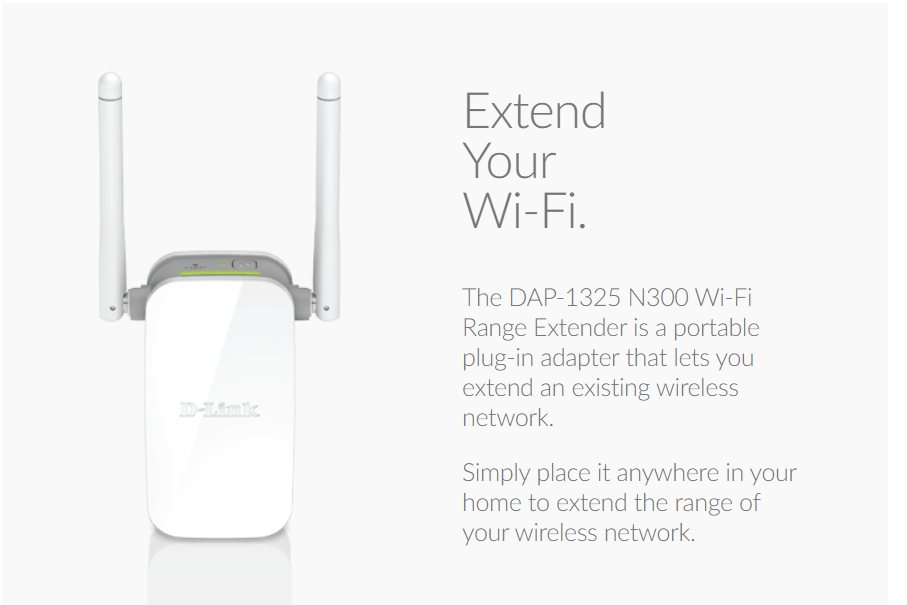 D-Link DAP-1325 Powerful N300 Wi-Fi Range Extender with Fast Ethernet Port and Easy One-Touch Setup for Extended Wireless Coverage