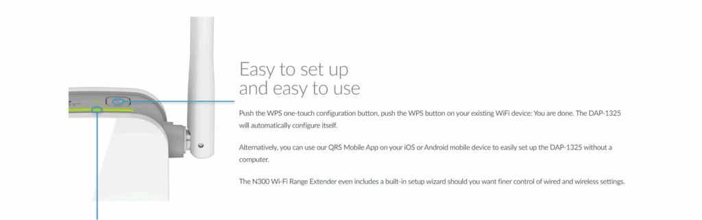 Setting up the DAP-1325 is incredibly simple, thanks to the integrated one-touch WPS button and an intuitive setup wizard accessible via the QRS Mobile app on iOS and Android devices. This range extender’s sleek, wall-plug design saves space and blends unobtrusively into any environment, making it an ideal choice for users seeking enhanced wireless connectivity without the clutter of additional cables. With robust WPA/WPA2 wireless encryption and Wi-Fi Protected Setup (WPS), the DAP-1325 ensures your network remains secure while extending its reach.