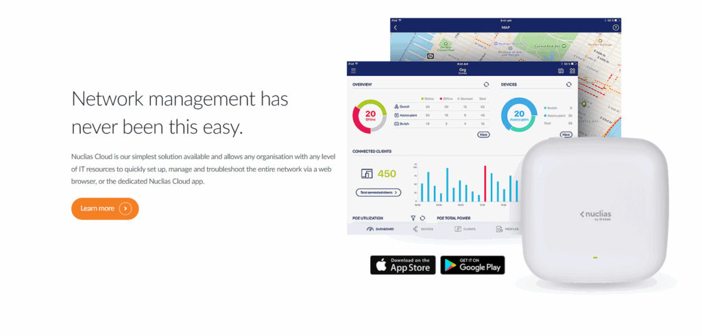 • Centralized Nuclias Cloud management with web and mobile app interface