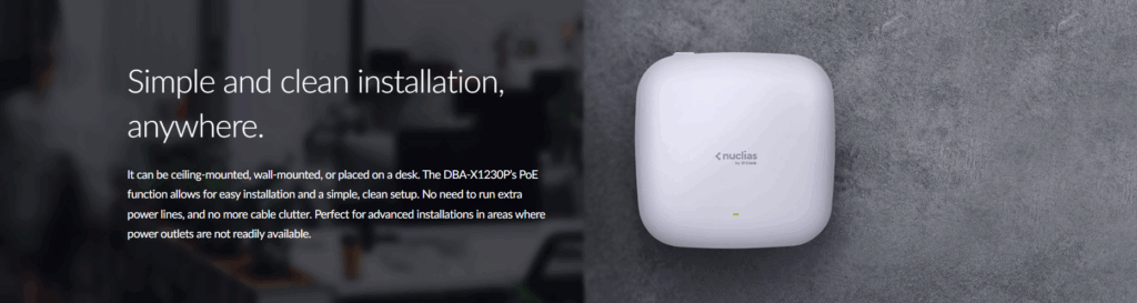 TThe D-Link DBA-X1230P device is perfect for enterprises looking for a reliable, high-capacity wireless solution that ensures secure, high-performance connectivity with minimal installation effort.