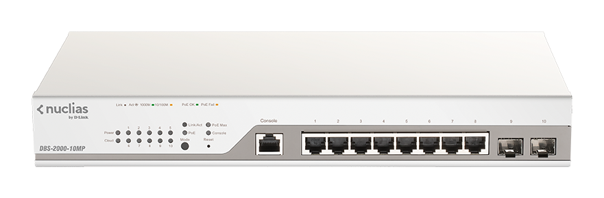D-Link DBS-2000-10MP Powerful 8-Port Cloud-Managed Gigabit PoE+ Switch with 2 SFP Ports