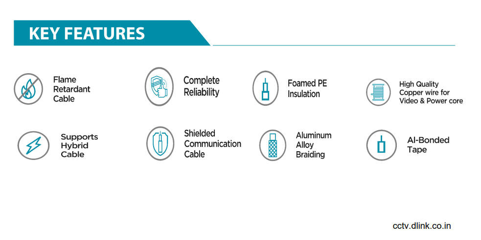 D-Link DCC-CAL-180-3F Powerful Hybrid CCTV Cable with Flame Retardant FR-PVC, Alloy Braiding