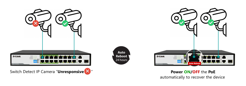 D-Link DES-F1018P-FE is designed to support both IEEE 802.3af and 802.3at PoE standards, the DES-F1018P delivers up to 250W of total power, supplying energy-efficient connectivity to devices such as IP cameras, VoIP phones, wireless access points, and other PoE-enabled devices.