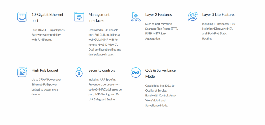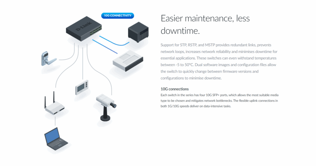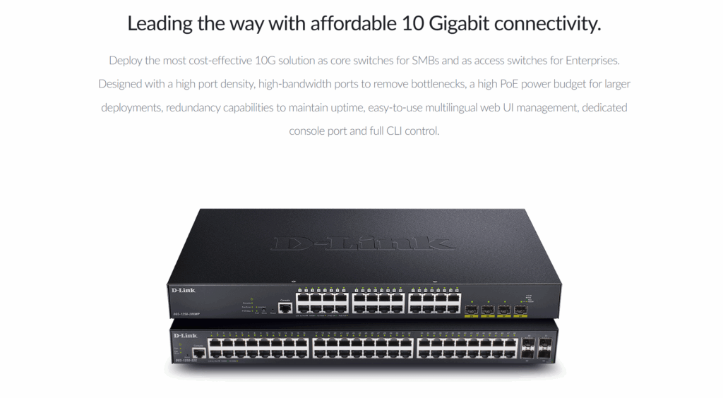 D-Link’s Gigabit, PoE, and Managed Switches are ideal for businesses, ISPs, and data centers looking for high-speed networking with advanced management features: