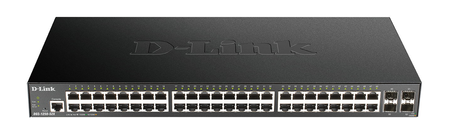 D-Link DGS-1250-52X | Power Performer 48-Port Smart Managed Switch with 4x10G SFP+, Advanced L2/L3, Dual Image, Security & QoS