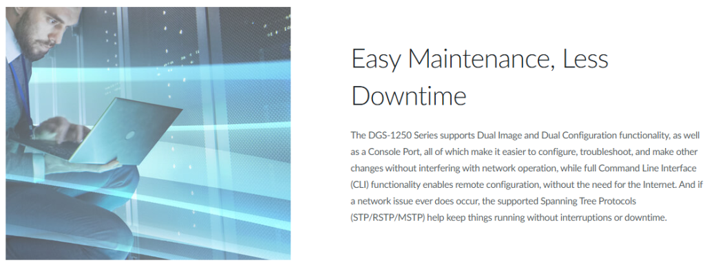 D-Link’s Gigabit, PoE, and Managed Switches are ideal for businesses, ISPs, and data centers looking for high-speed networking with advanced management features: