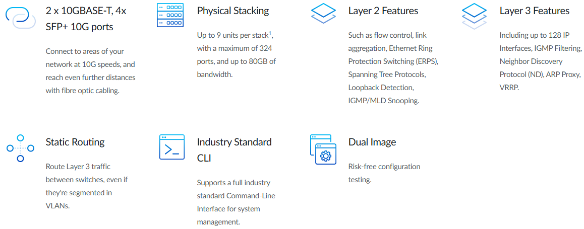 • 2 x 10GBASE-T and 4 x 10G SFP+ ports provide all the uplink capacity your network needs