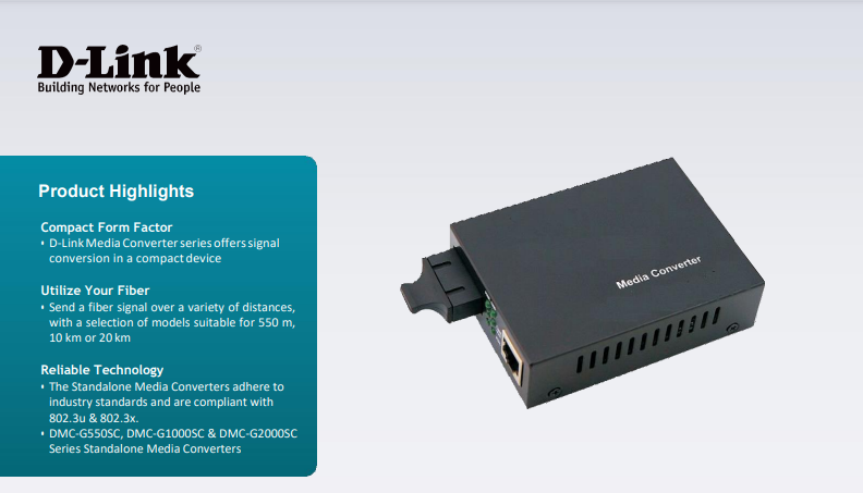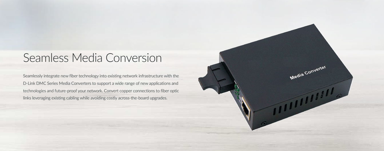 • D-Link Media Converter series offers signal conversion in a compact device.