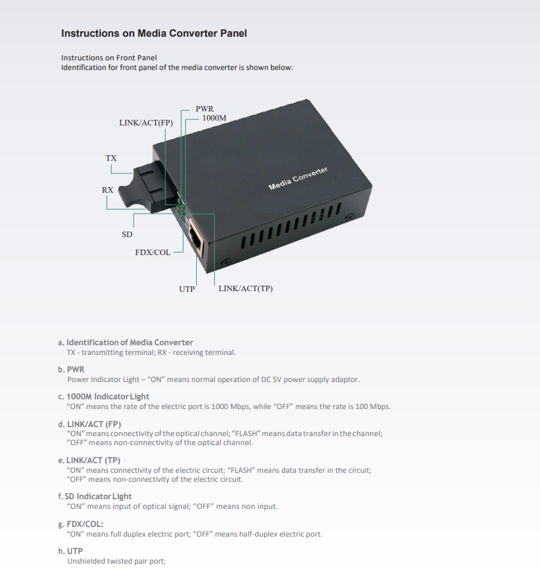 • The Standalone Media Converters adhere to industry standards and are compliant with 802.3u & 802.3x.