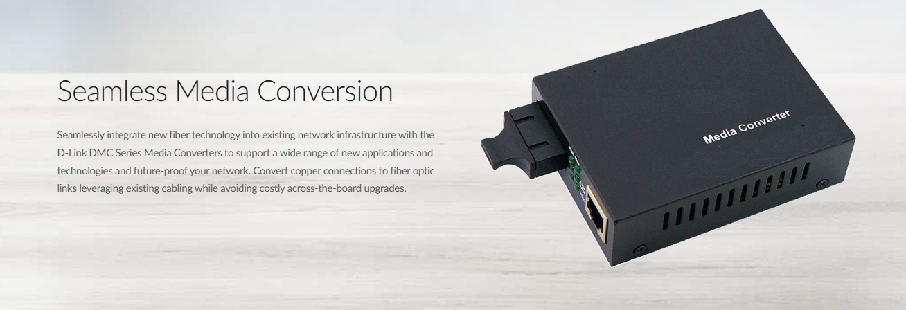 • D-Link Media Converter series offers signal conversion in a compact device.