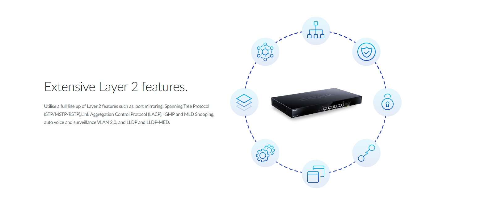 D-Link’s Gigabit, PoE, and Managed Switches are ideal for businesses, ISPs, and data centers looking for high-speed networking with advanced management features:
