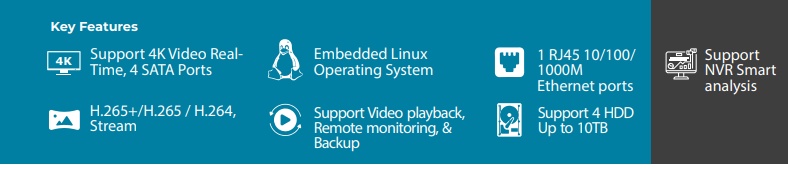 • Advanced Recording & Playback: Efficiently records and stores footage while allowing smooth playback for review.