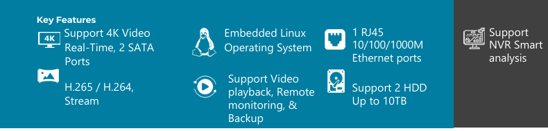 ✔ 2 x SATA Ports (Supports up to 20TB HDD) – Ample storage for long-term video retention.