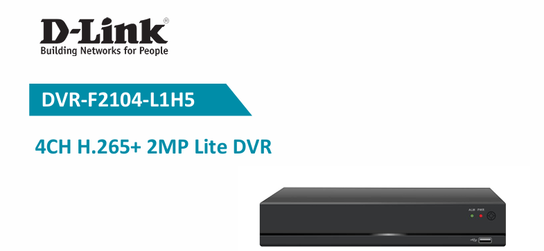 D-Link DVR-F2104-L1H5 | 4-Channel H.265+ 2MP Lite DVR | Supports AHD/TVI/CVI/IP Cameras up to 2MP | 1 SATA Slot | 2 Extra IP Channels | Cloud Storage