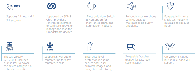 • GRP2602W includes built-in dual-band Wi-Fi support