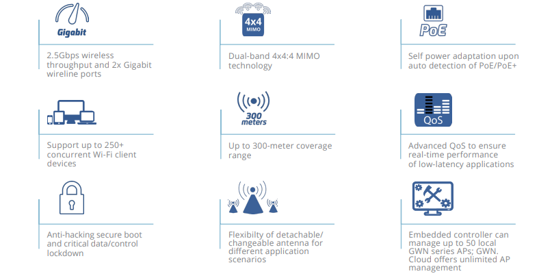 🔹 Grandstream Wireless Access Points – Dual-band Wi-Fi APs for fast, secure, and scalable wireless networks.