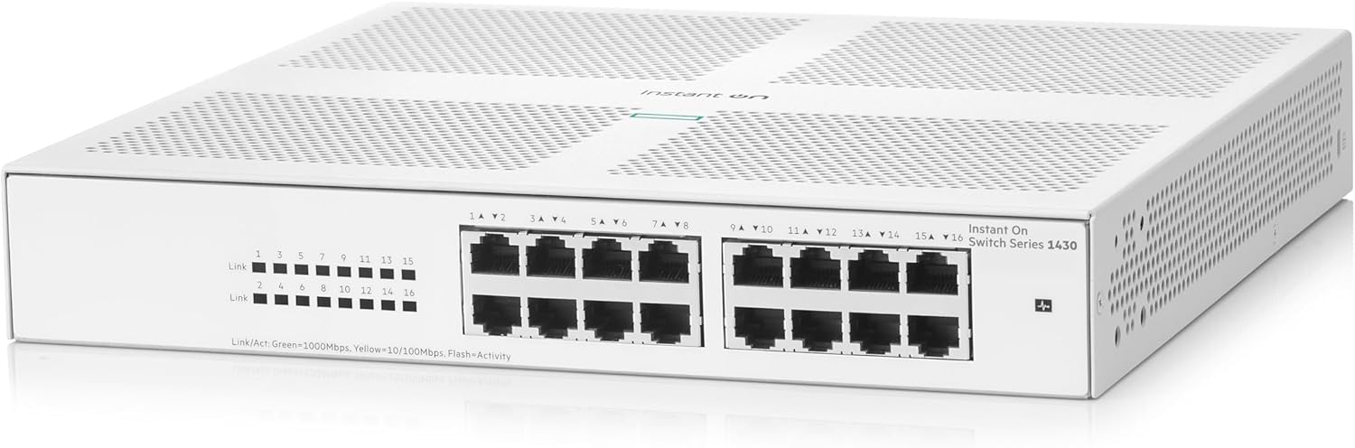HPE Aruba ION 1430 16-Port Gigabit Switch | 32Gbps Switching Capacity | 23.80 Mpps Throughput | 16x 1G RJ-45 Ports | Plug-and-Play Networking | Compact & Durable Design