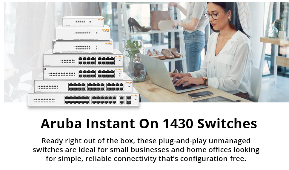 HPE Aruba ION 1430 24-Port Gigabit Switch | 48Gbps Switching Capacity | 35.71 Mpps Throughput | 24x 1G RJ-45 Ports | Plug-and-Play | Internal Power Supply