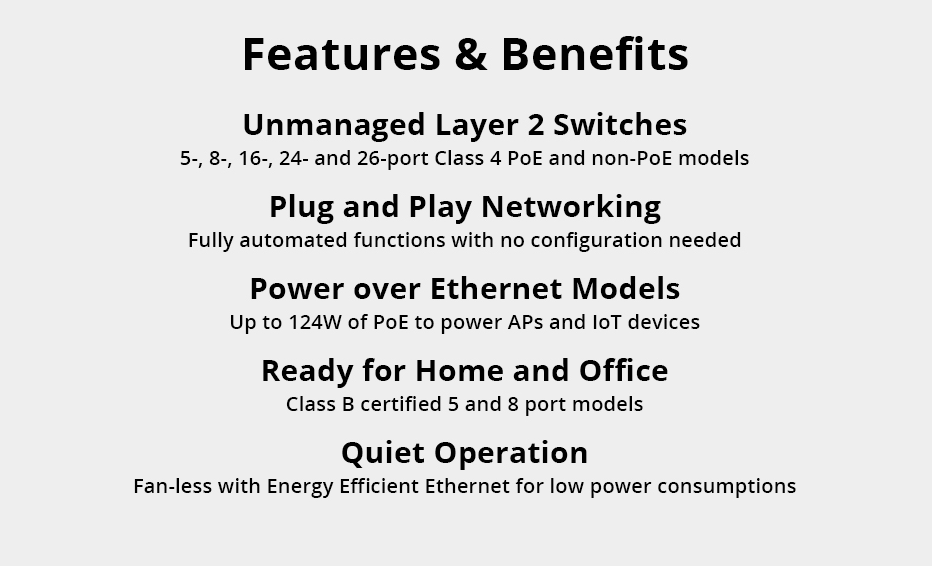Switch TypeUnmanaged Layer 2 Gigabit Ethernet