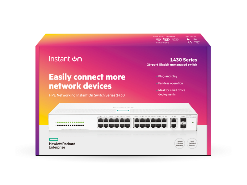 HPE Aruba ION 1430 26-Port Gigabit Switch comes with enterprise-grade performance at an affordable price, the Aruba Instant On 1430 26-Port Gigabit Switch is the perfect choice for businesses looking for fast, efficient, and scalable networking solutions.