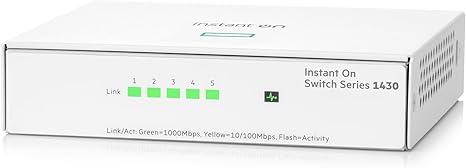 HPE Aruba ION 1430 5-Port Gigabit Switch has a installation which is hassle-free with plug-and-play setup, requiring no configuration or IT expertise. Whether you’re expanding a network, setting up a new office, or upgrading existing infrastructure, the Aruba Instant On 1430 5-Port Gigabit Switch offers a simple, high-performance solution to meet modern networking demands.
