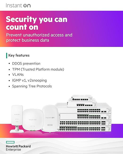 ✅ Smart-Managed Switching – Manage via Aruba Instant On Cloud, mobile app, or local GUI