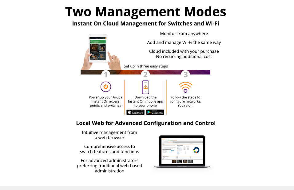 ✅ Smart Management Options – Aruba Instant On Cloud, mobile app, or local GUI