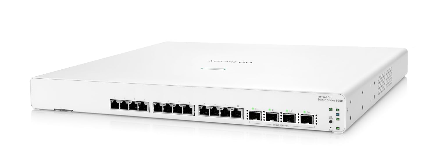 HPE Aruba ION 1960 16-Port 10G Switch | 12x 10GBase-T RJ-45 + 4x 10G SFP+ | 320 Gbps Switching | 238 Mpps Throughput | Layer 2+ | ACL, DHCP Snooping, IPv6 Support