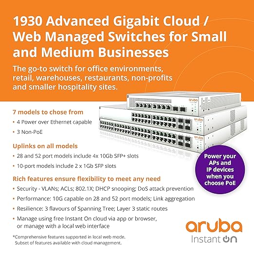 🔹 Aruba Instant On 1930 Series – Best for small businesses and branch offices.