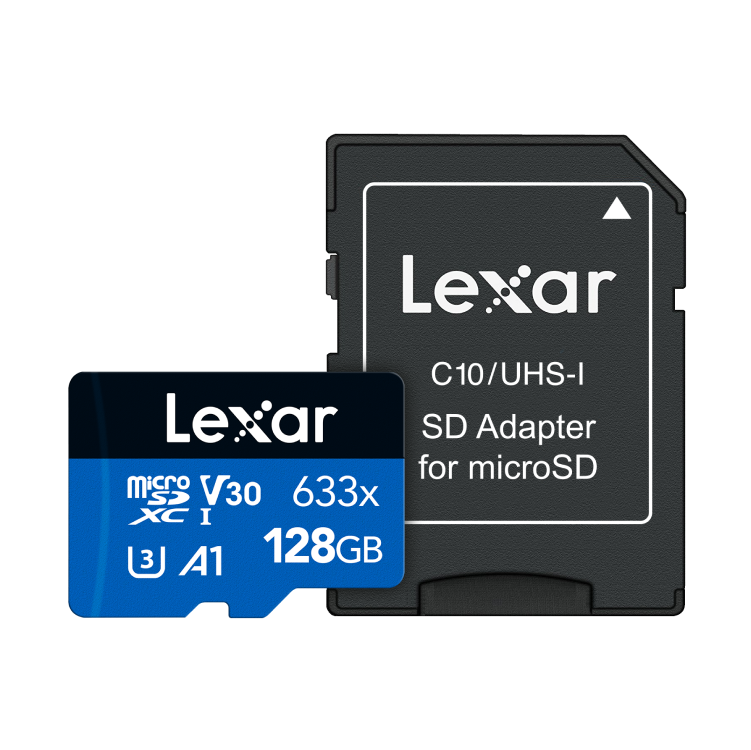 Lexar 128GB 633x microSD UHS-I Card Blue Series offers fast data transfer, reliable performance, and large storage capacity for smartphones, cameras, and tablets, ensuring smooth 4K video recording and quick file sharing.