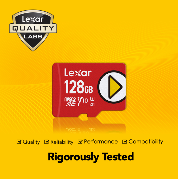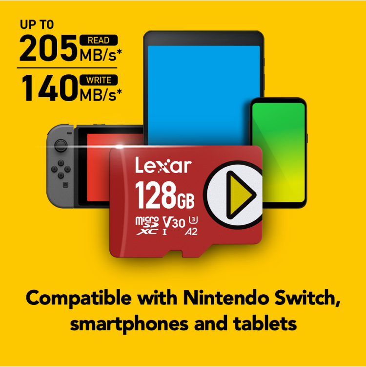 The Lexar 128GB PLAY LMSPLAY128G-BNSNG supports A1-rated app performance, allowing apps to launch and run smoothly with minimal lag. It’s also UHS-I U3/V30 rated, making it ideal for Full-HD and 4K video recording. With a generous 128GB of space, you can store your favorite games, apps, videos, photos, and music—all in one place.